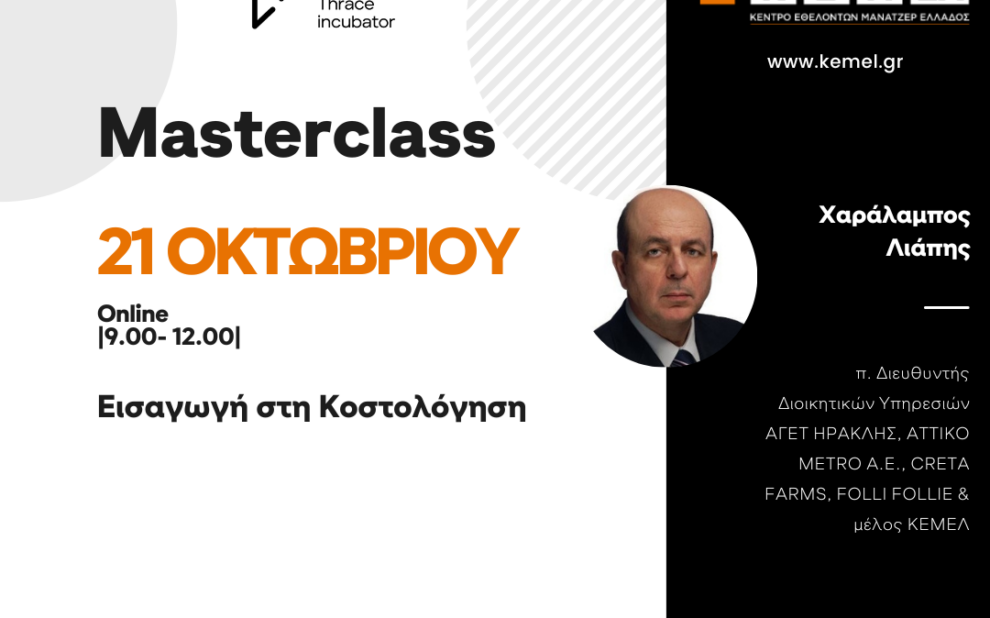 Masterclass με θέμα “Εισαγωγή στην Κοστολόγηση”